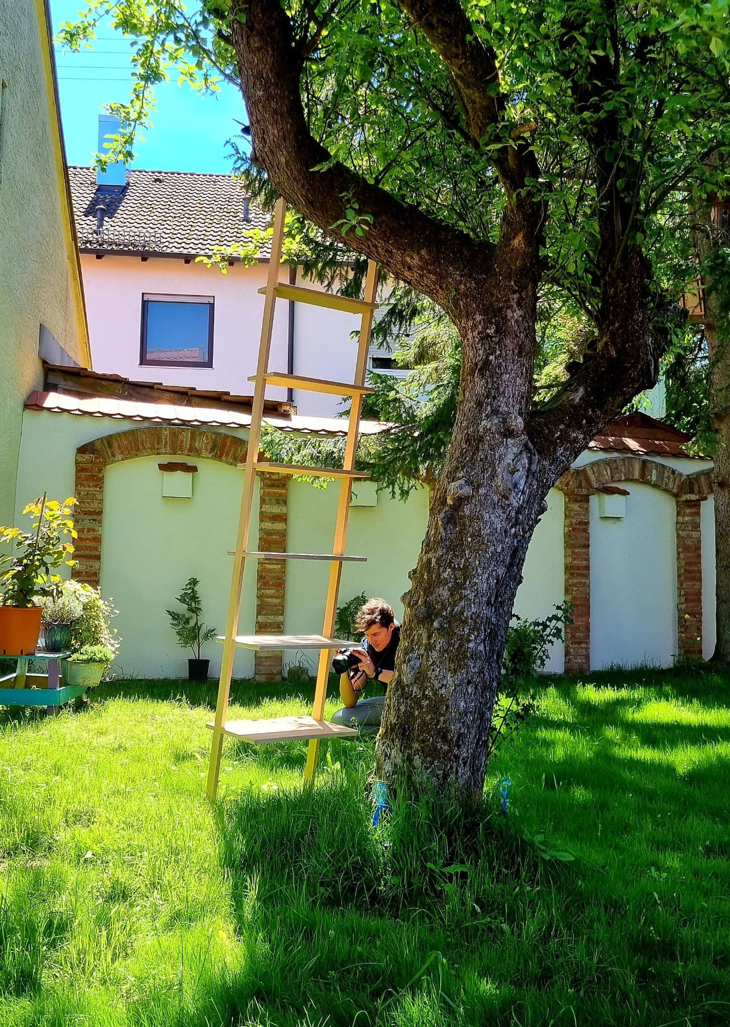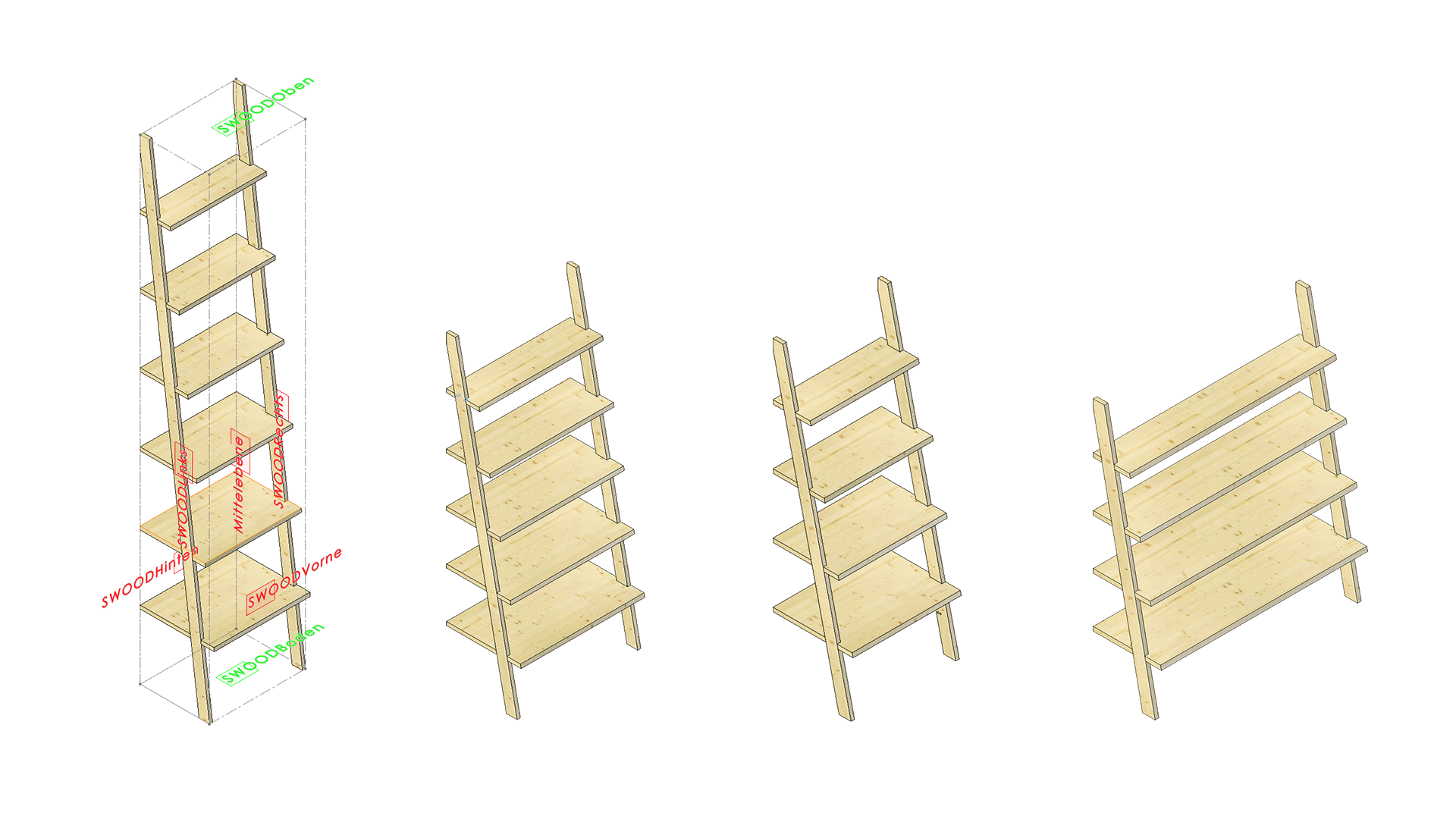 Constructed from high-quality plywood, this ladder shelf is both simple and robust, featuring a consistent use of material throughout. With a focus on waste optimization, the design minimizes the number of wood pieces used, while still maintaining functionality and aesthetic appeal.