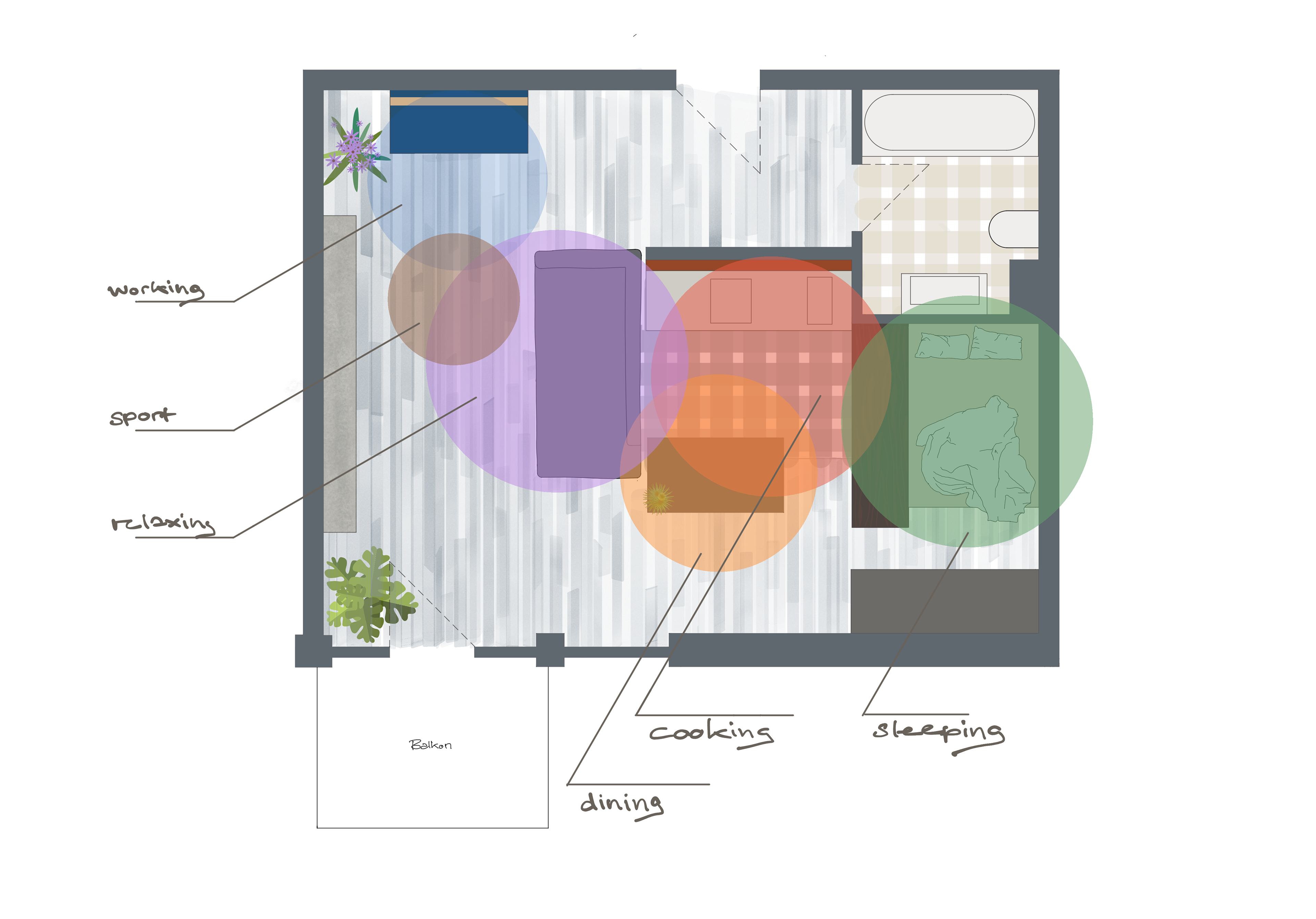 Three times a day, seven days a week. On average, consumers today spend half the amount of time on cooking compared to their parents. While also claiming that good food plays a huge role in their lives. The project aims to enhance the cooking experience by creating a kitchen that aligns with user flexibility and maintains ease of use. In the process a interior design concept was developed that connects distinct zones for a enhanced integration of daily life in a small space apartment.