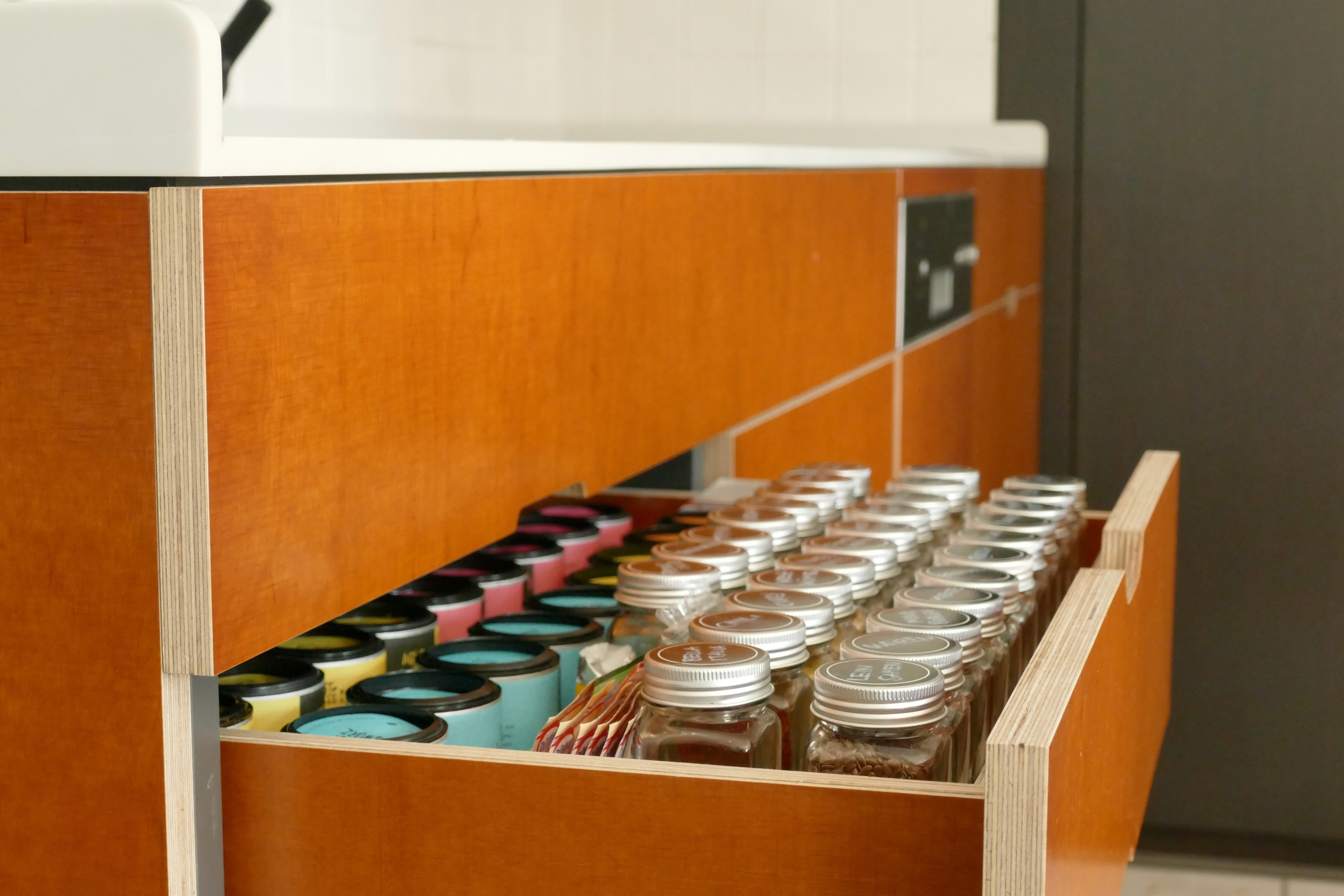 One of the major challenges encountered was addressing the constraint of limited space. Every appliance had to be accommodated in the smallest possible area, seamlessly balancing storage space for spices and various small kitchen accessories. Overcoming this spatial dilemma was a crucial aspect of the design process.